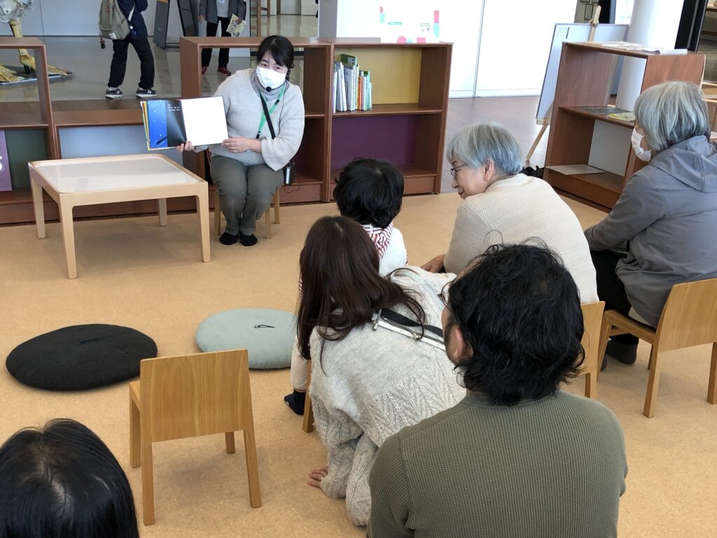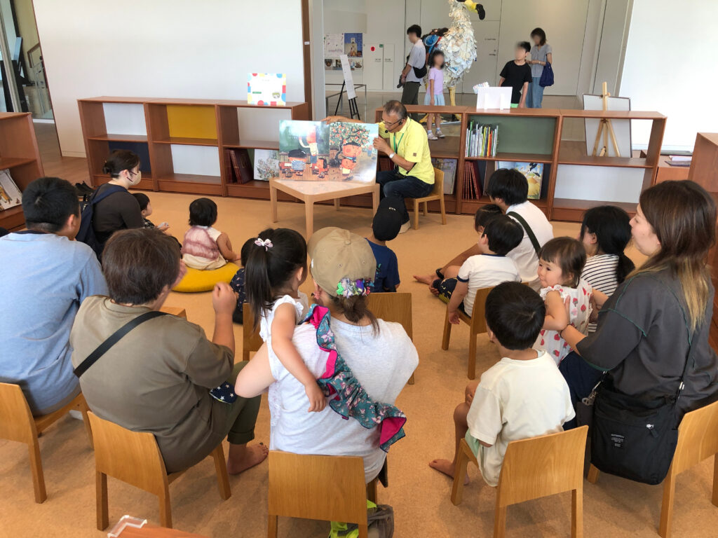 美術館のキッズスペースに集まろう!ゆったりくつろげるスペースで読み聞かせを行います。美術館ならではの選書をお楽しみに。