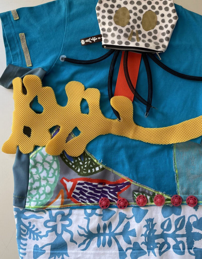 真っ白なTシャツに舞台衣装で使用する特殊な生地を針と糸で縫い付け妖怪へと変身させる企画です。