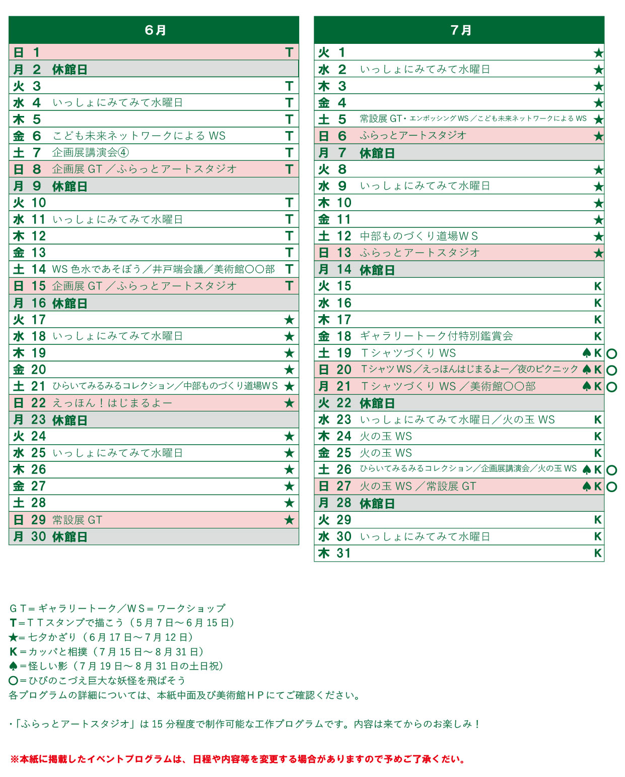 ※掲載しているイベントプログラムは、 日程や内容等を変更する場合がありますので予めご了承ください。