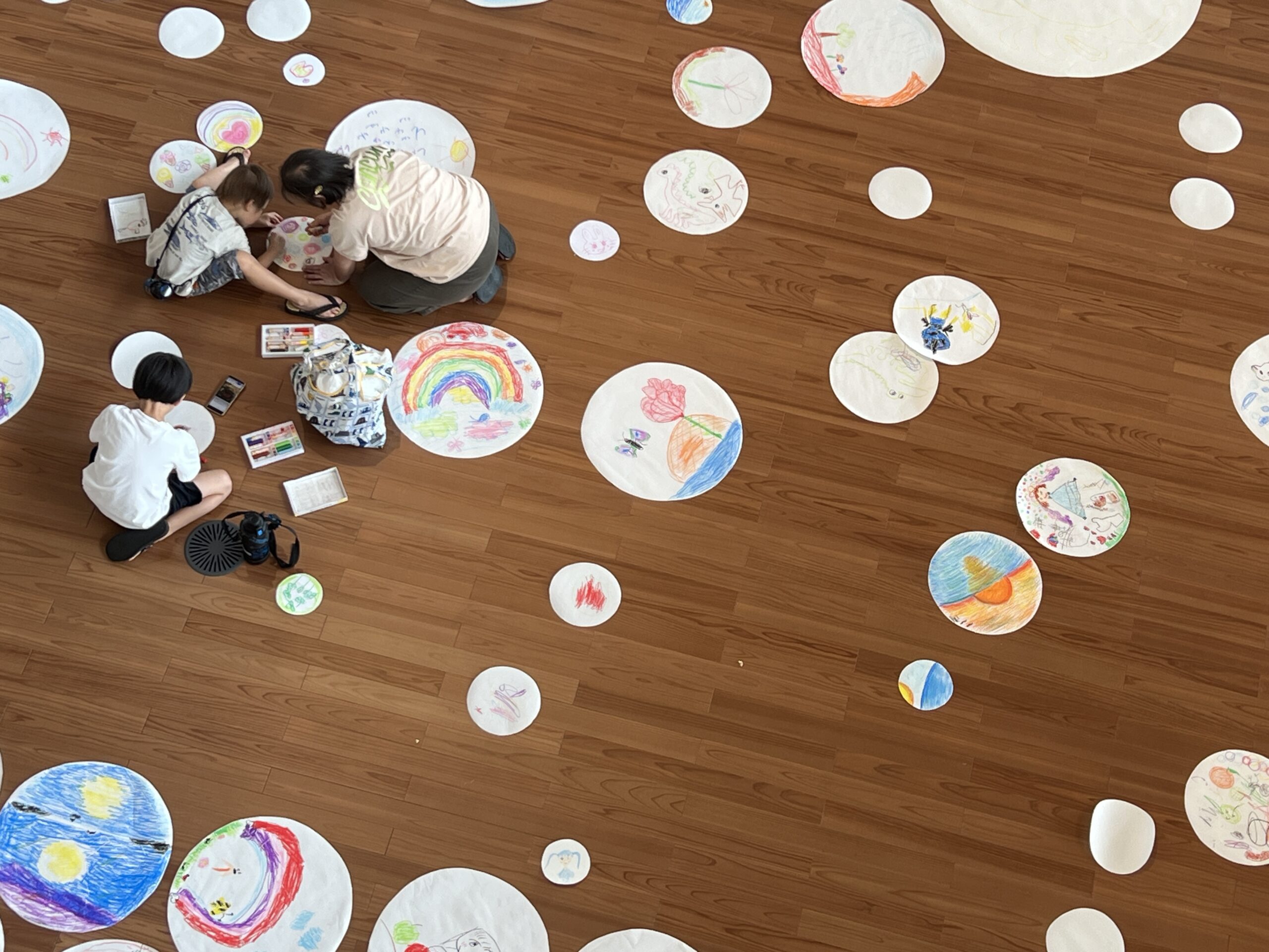 「A.L.L.presents アートのとびらをひらく展覧会シリーズ」の開会に合わせ、ひろまで思いっきりお絵描き(らくがき)をする企画です。敷き詰められた大きな画面に、なに描こう?