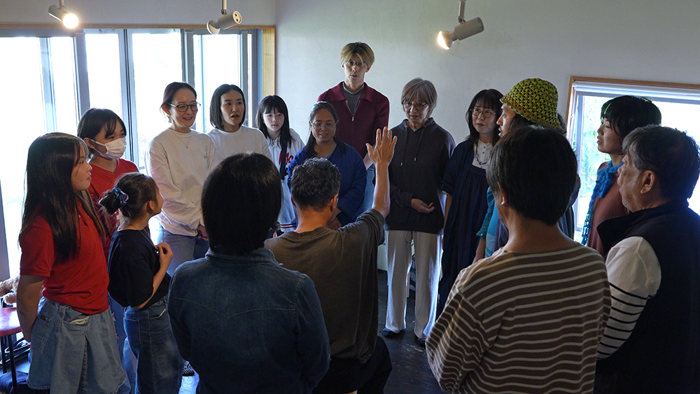 前半ではレクチャーのほか、呼吸法・リスニング・想像力のエクササイズを、後半では実際に声を合わせ響かせるワークを実施します。
