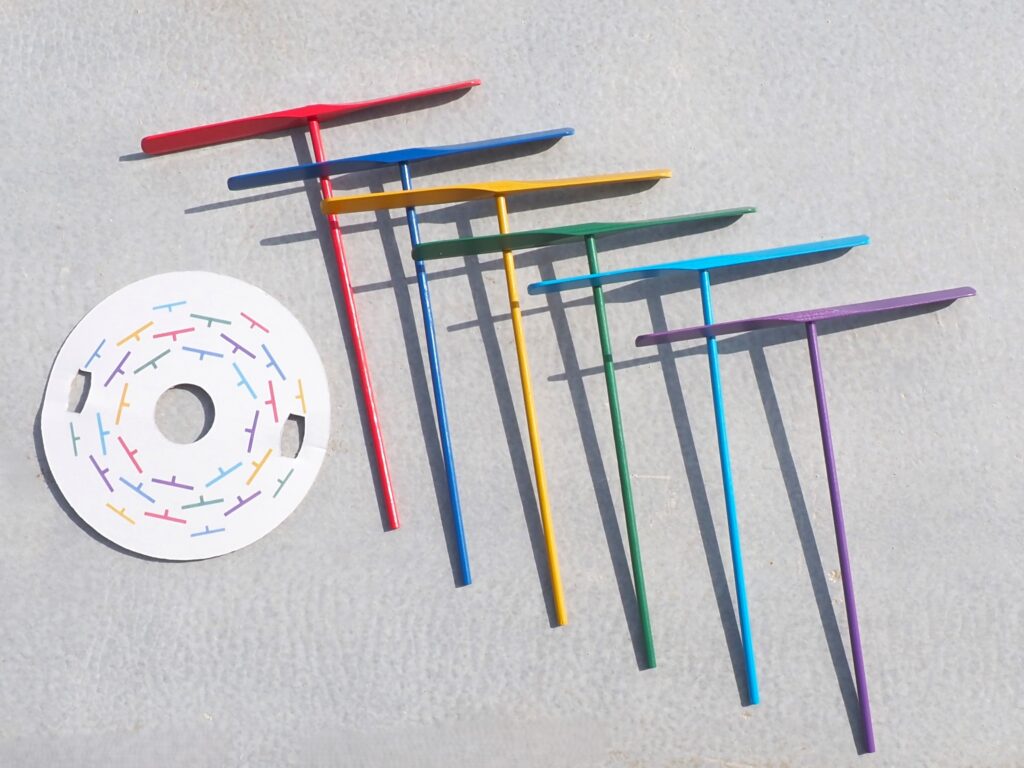 シンボルマークの「T」のシルエットと、6色を鮮やかに表現した、オリジナルの竹とんぼです。塗装には鳥取県内のけん玉メーカーの技術が使われています。史跡・大御堂廃寺跡歴史公園の芝生でぜひ飛ばしてみてください。(倉吉異業種交流プラザとの共同開発商品です)