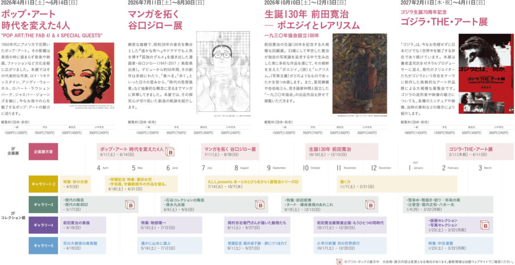 展覧会ごとに観覧料が異なります。詳しくは各展覧会のページをご覧ください。